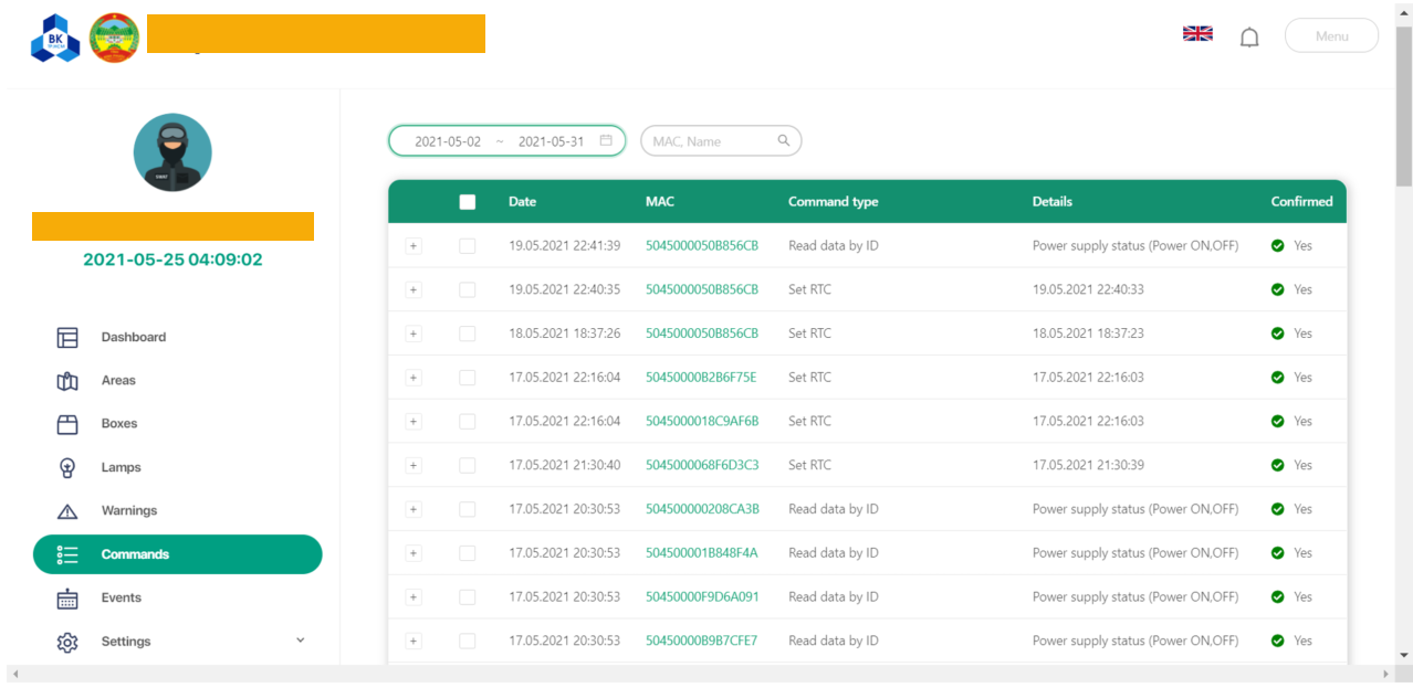 Thống kê các lệnh gởi từ hệ thống đến thiết bị, trạng thái thực thi…
