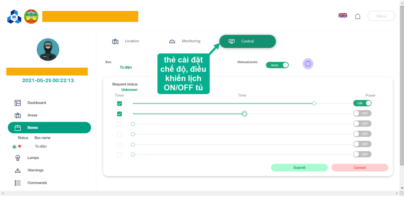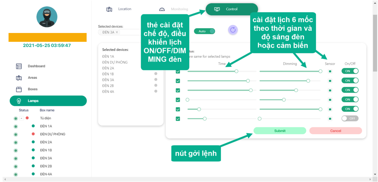 Cài đặt chế độ điều khiển, lịch điều khiển ON/OFF cho tủ điện chiếu sáng